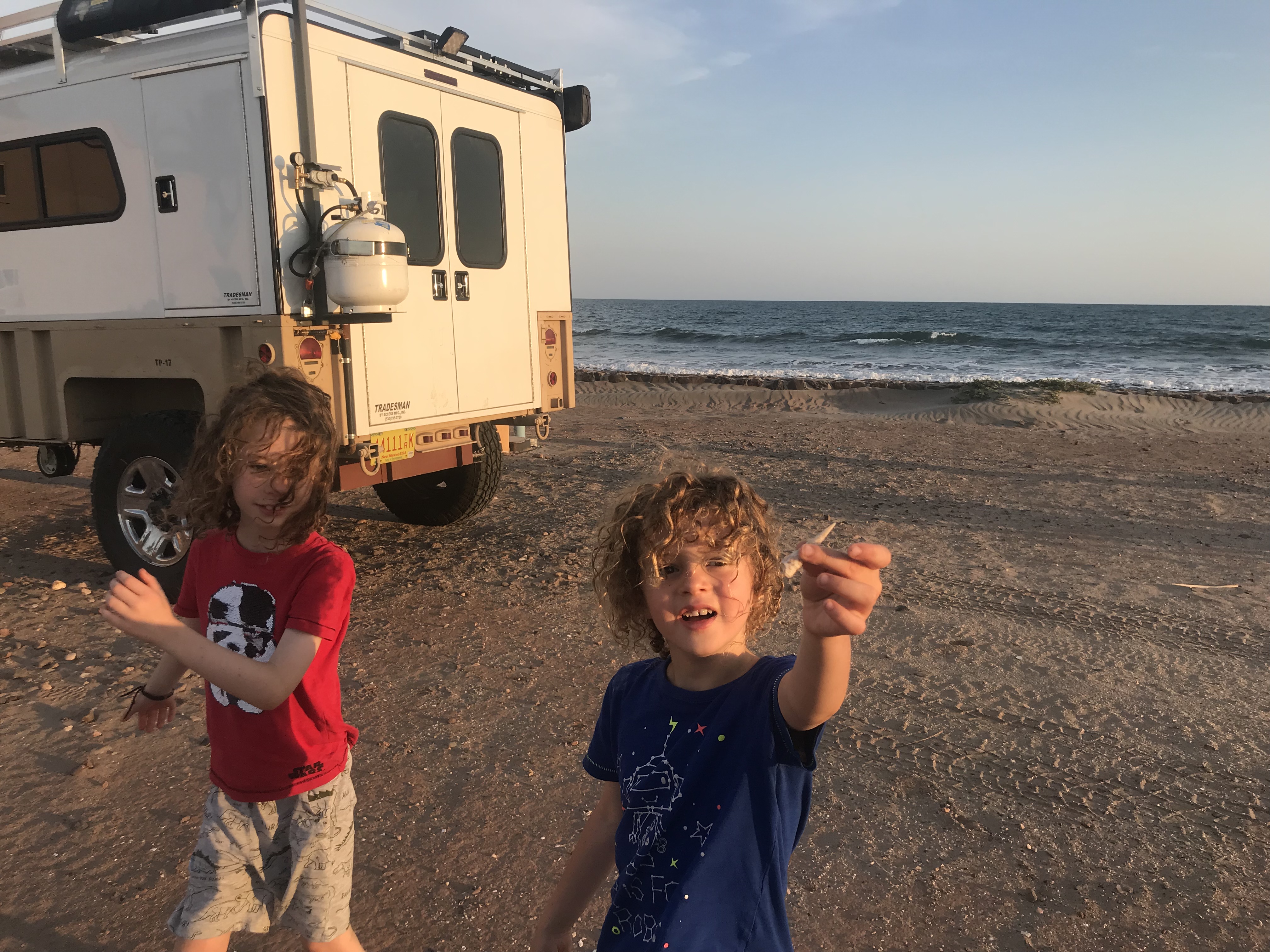 We are camping on the beach for two nights. The beach is really fun, and the water is warm but not too warm. We found a lot of coral and seashells. There were shells that looked like party hats, and shells that looked like mouths without teeth.