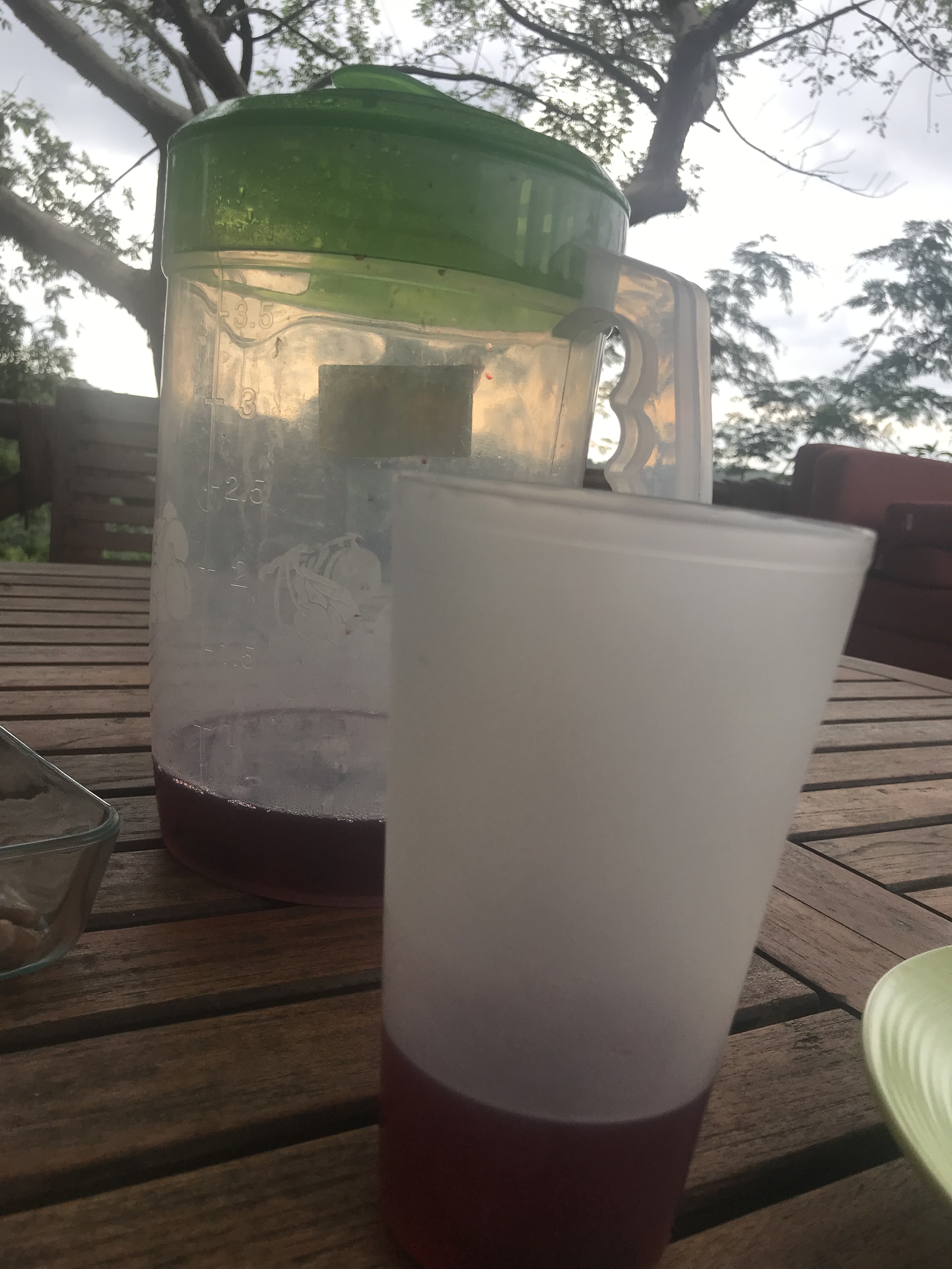 I think the Jamaica tastes a little sour and quite sweet. It’s a little tart. It’s very dark red. As red as a rose.