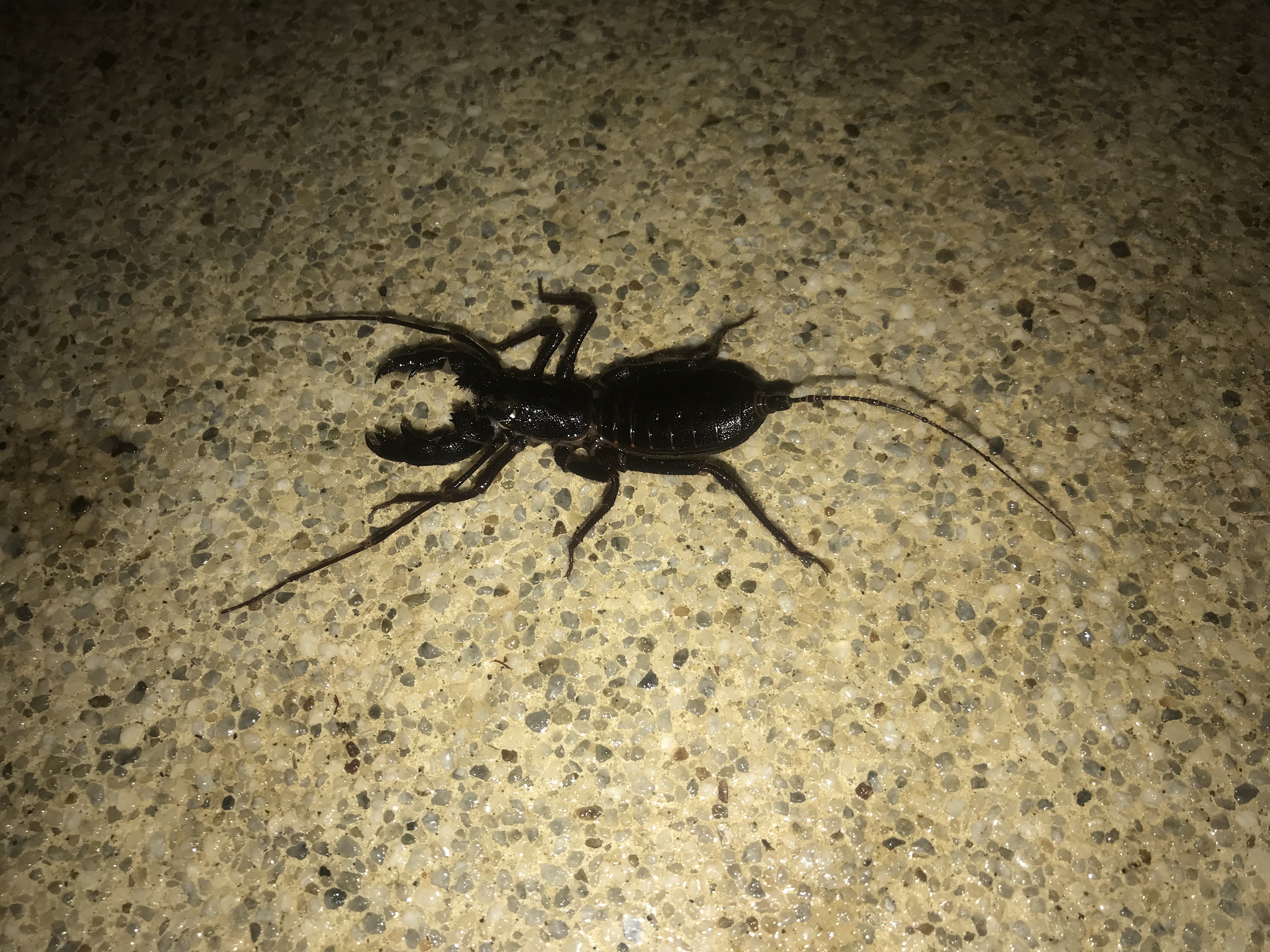 We found a vinegaroon when we arrived at our new house! It’s a type of creature that looks like a scorpion, but it’s not. We learned that we really can’t forget to check our shoes! If you leave your shoes outside, you have to check that there isn’t a vinegaroon or a scorpion or a child of the earth in them!