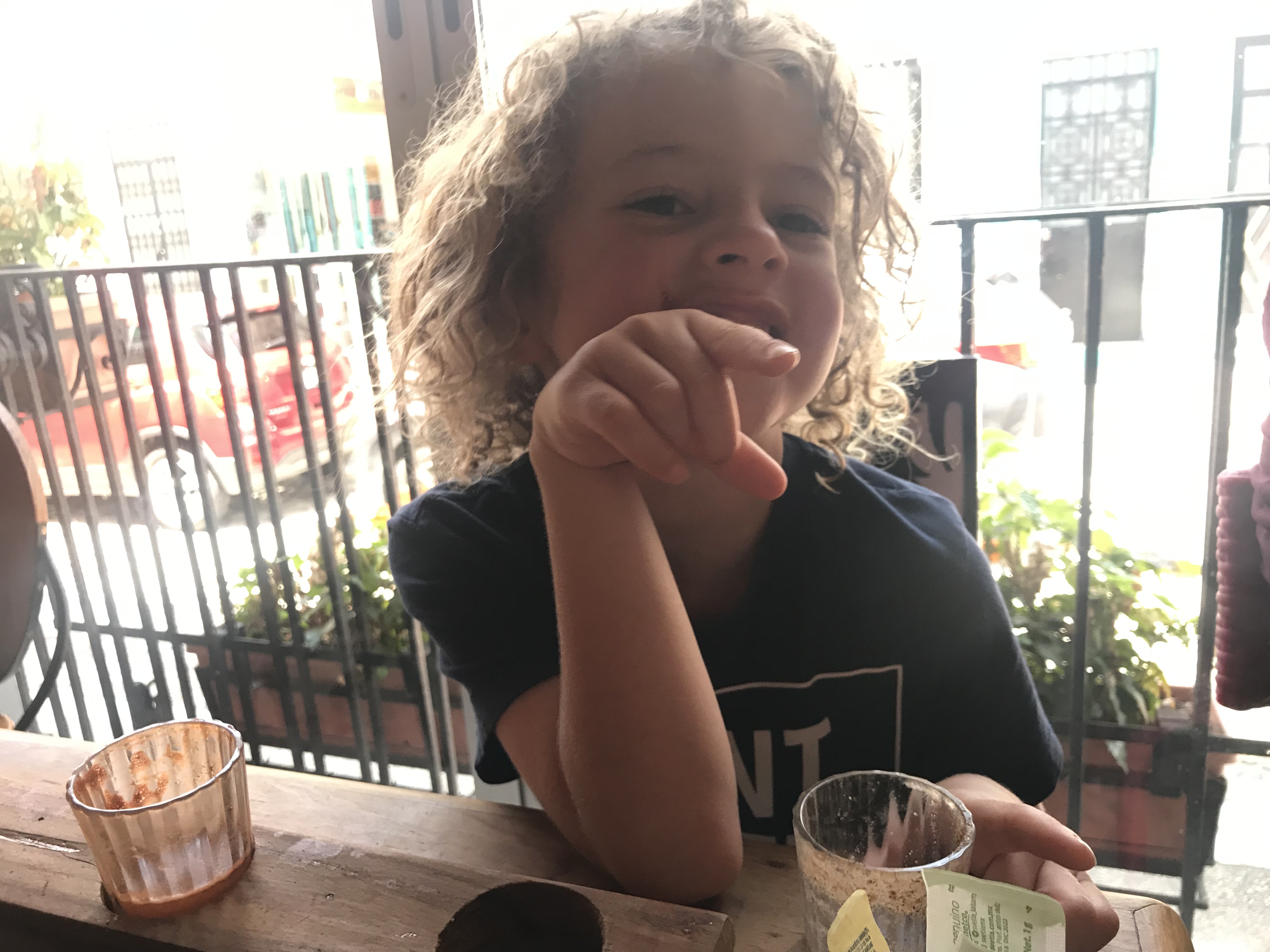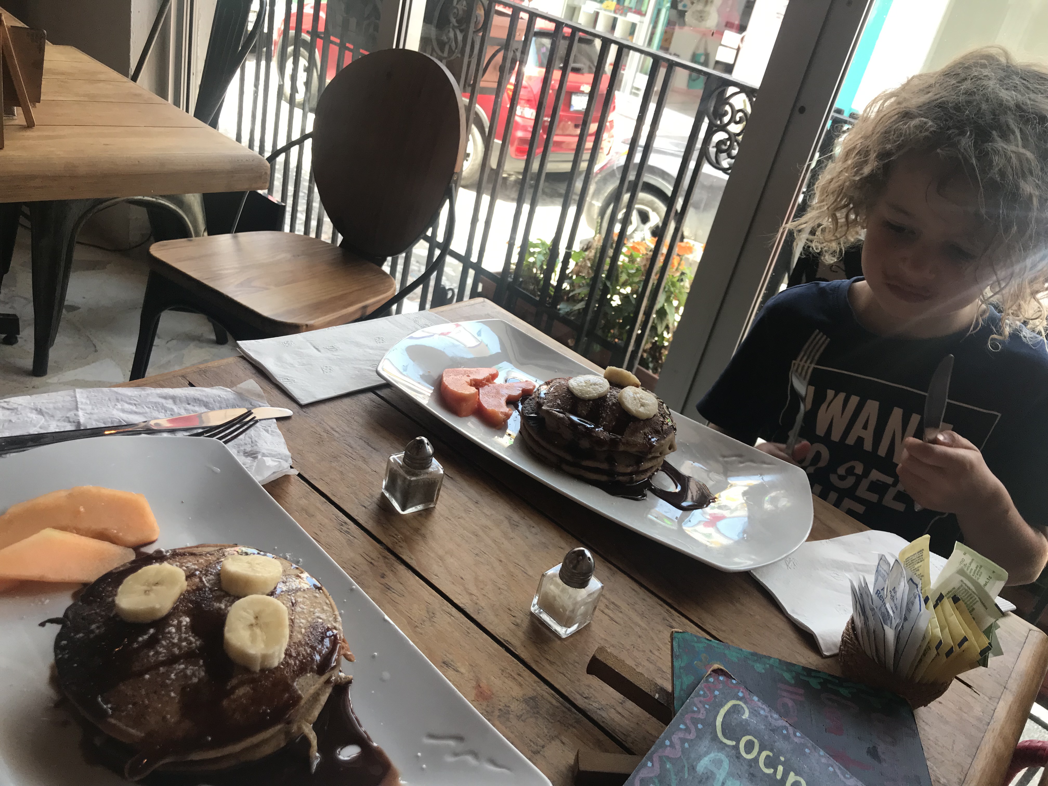 We drove to Puerta Vallarta today and had brunch there. We had chocolate pancakes covered in chocolate sauce, and they were very, very, very, very, very, very, a million times very good!